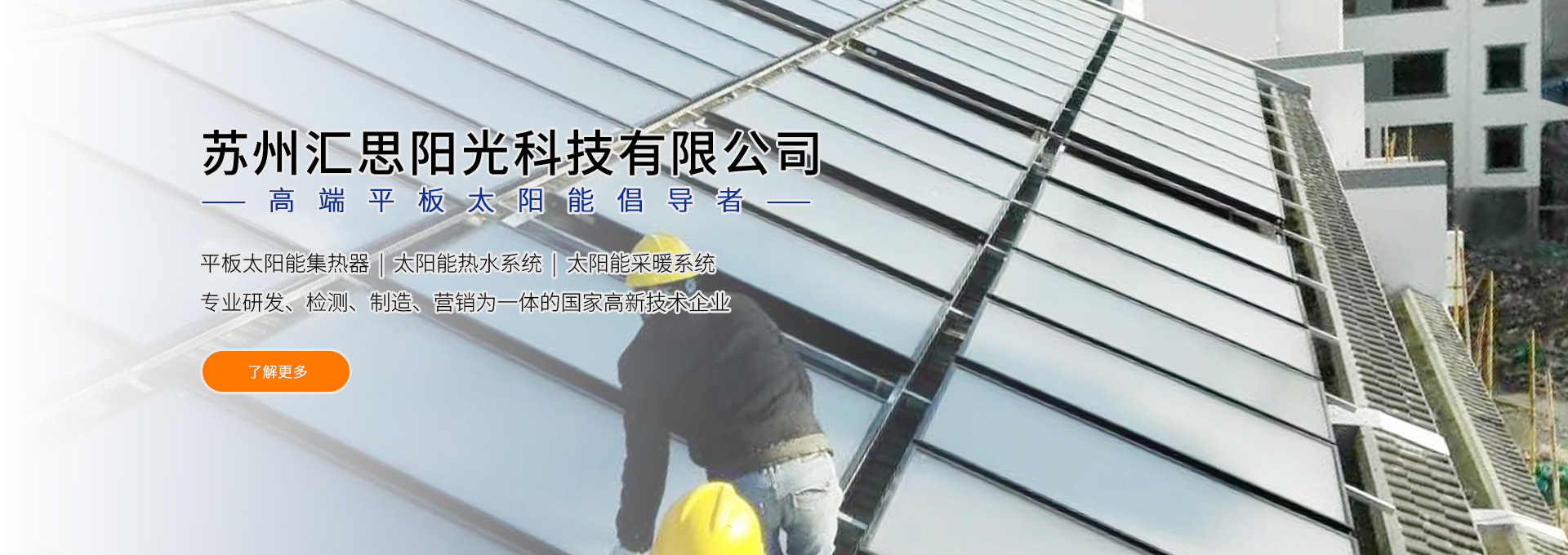 蘇州匯思陽光科技有限公司位于交通便利、環境優美的蘇州工業園區。公司是集平板太陽能集熱器、太陽能熱水系統、太陽能采暖系統等建筑一體化產品的專業研發、檢測、制造、營銷為一體的國家高新技術企業。 公司采用原裝進口藍鈦板芯,引進歐美成熟的平板太陽能熱水系統生產設備和技術,先進的檢測手段和生產工藝。具有年生產十萬套平板太陽能系統規模的生產能力并掌握核心知識產權,擁有發明、實用新型外觀設計等多項專利。公司產品在行業內率先獲得SOLAR KEYMARK(歐盟)、SRCC(美國)、CE(歐盟)國外專業認證,國內權威金太陽認證、ISO9001-2008質量管理體系認證,康居認證等并有著良好的海內外客戶信譽,產品遠銷歐洲、北美洲等30多個國家和地區。 在企業發展過程中,公司秉承以環保、健康為出發點,以“與地球和諧相處,...